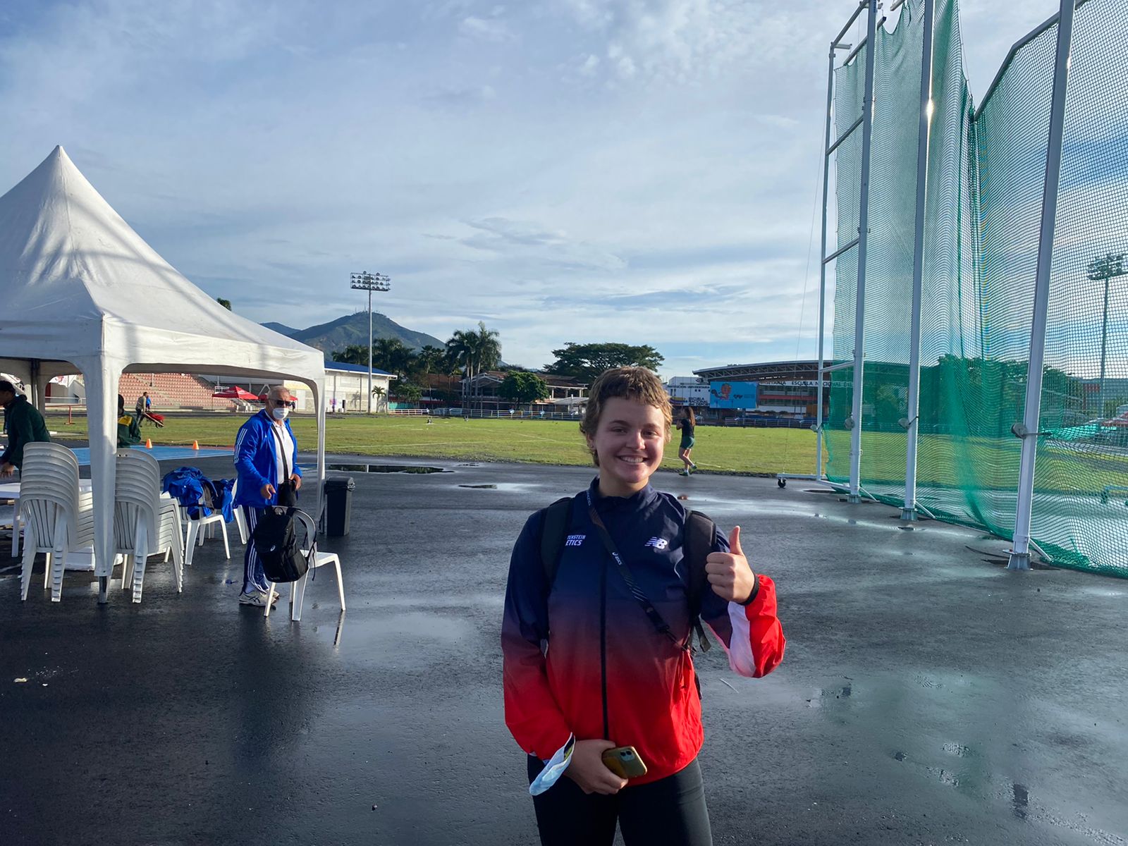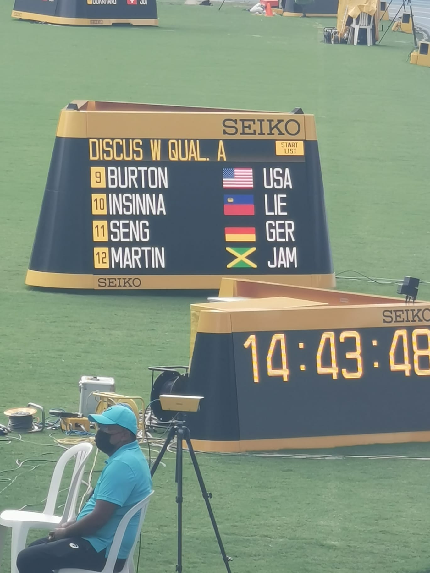 Nach einer hektischen phase der Akkreditierung machte sich das Duo Jule/Günter zum ersten Training in ein nicht fertigen Stadion. Das Stadion hatte noch keinen Belag und dadurch mussten die vielen Athleten auf drei 50m tartanbahnen auskommen. Jule brauchte zum Glück keine Bahn und absolvierte ein gutes Training.